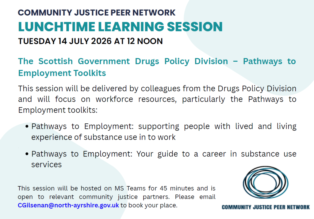 The Community Justice Peer Network are hosting a series of Lunchtime Learning session on MS Teams.
