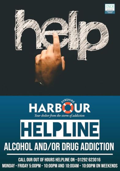 Latest News Local CJ News February 6, 2023 Harbour Ayrshire are delighted to announce that their helpline for anyone affected by addiction launches on Monday 6 Feb at 5.00pm. A number of highly trained volunteers will help sign post callers to services and / or residential treatment. AddictionCommunitiesCommunity JusticeEast AyrshireHelplineNorth AyrshireSouth Ayrshire