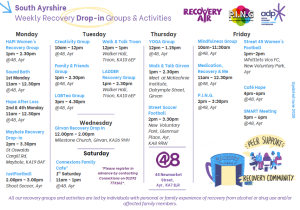 RecoveryAyr is a peer led grassroots recovery charity, established in 2014, who provide recreational activities, along with training and volunteering activities which support individual and whole family recovery from alcohol or drug use.